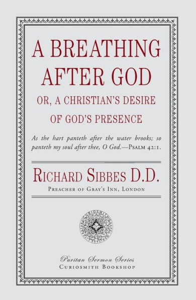 This sermon by puritan Richard Sibbes, sheds light on Psalm 27:4, "One thing have I desired of the Lord, that will I seek after; that I may dwell in the house of the Lord all the days of my life, to behold the beauty of the Lord, and to enquire in his temple." Breathing signifies "a passionate longing for" (Psalm 42:1), or "a desperate cry to the Lord" (Lam. 3:56). The message is broken down into the object (why one thing), the desire itself, the house of the Lord, and the beauty of the Lord. Full title: A Breathing After God; or, a Christian Desire of God's Presence.