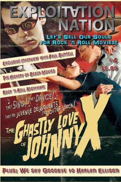 Rock 'n Roll Movies capture what it's meant to be young, what it's meant to rebel against the establishment of your parents' world. Unbridled dancing, laughter, partying, aliens, zombies, sex, drugs, auto shop, malt raids, sock hops, and the rhythm method! Exploitation Nation's special 144-page salute to the rock 'n roll movie boasts an extensive interview with Paul Bunnell (The Ghastly Love of Johnny X); Jon-Mikl Thor and Frank Dietz talk Rock 'n Roll Nightmare; Terry Thome talks Slade in Flame and presents an exhaustive account of AIP's "Beach Party" films; The Purple One on Film; the missed opportunity of Slumber Party Massacre II! Plus: we say a tearful goodbye to our patron saint, Harlan Ellison. Finally, Richard Elfman drops by to say his piece about FORBIDDEN ZONE. All this and more (so very much more) in Exploitation Nation#4: Rock 'n Roll Movies Forever!! More pages! No extra cost (to you...we will remain in poverty so that you are entertained)!